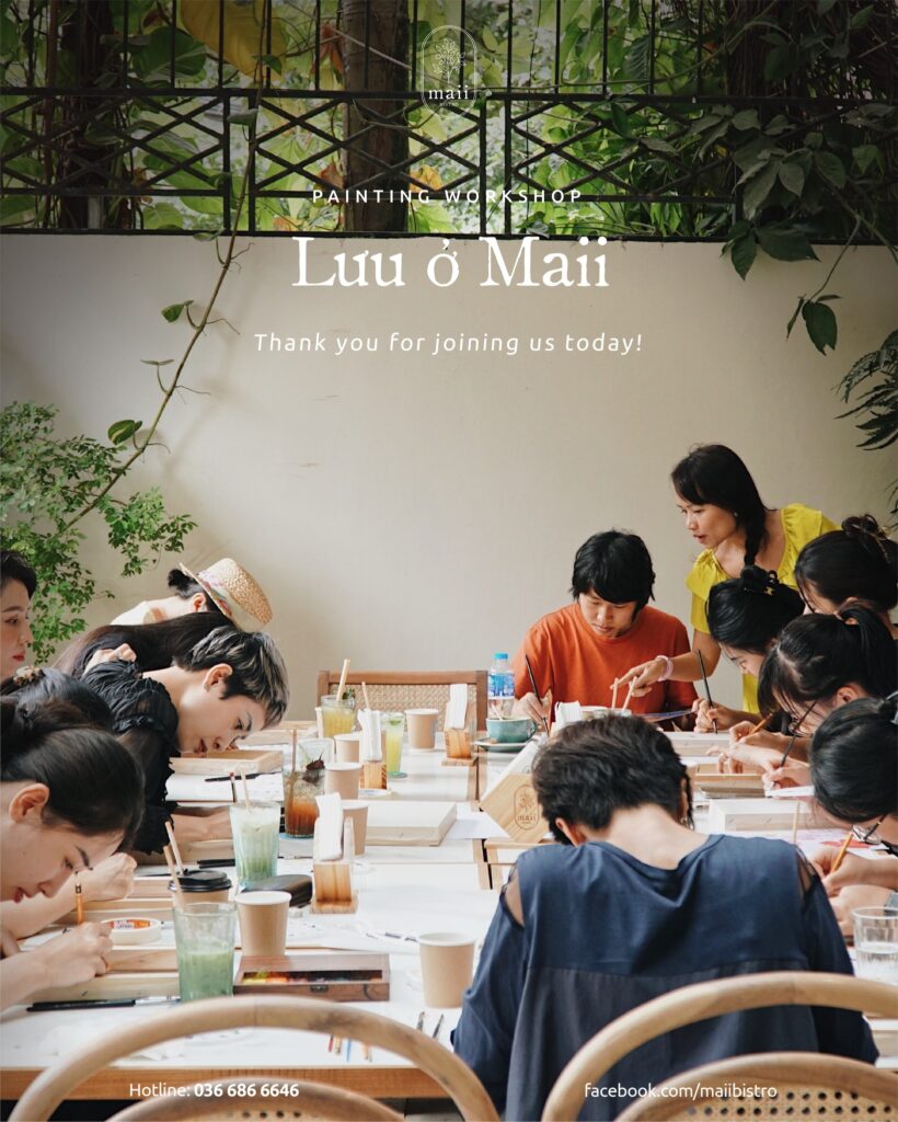 Silk Painting Workshop Thank you for spending time at our workshop 𝐋𝐮̛𝐮 𝐨̛̉ 𝐌𝐚𝐢𝐢 this morning. Let’s wait for beautiful moments captured at Maii. With a little monsoon,🌿 Maii Bistro previous post Garden at Maii next post Garden at Maii Leave a Reply Cancel replyYour email address will not be published. Required fields are marked *Comment * Name * Email * Website Save my name, email, and website in this browser for the next time I comment.
